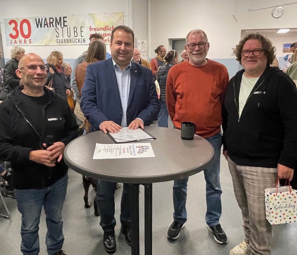 Der saarländische Minister für Arbeit, Soziales, Frauen und Gesundheit, Dr. Magnus Jung, sprach dem Team der Wärmestube seinen Dank aus – für den unermüdlichen Einsatz für Menschen, die in oder von Armut betroffen sind. Gerade in einer Zeit, in der aus verschiedenen gesellschaftlichen Strömungen wieder Angriffe auf den Sozialstaat geführt werden, bedarf es Einrichtungen wie der Wärmestube, die sich durch ihr Engagement den Angriffen entgegen stellen und für die Menschen Anlaufstellen und Sicherheit bieten.