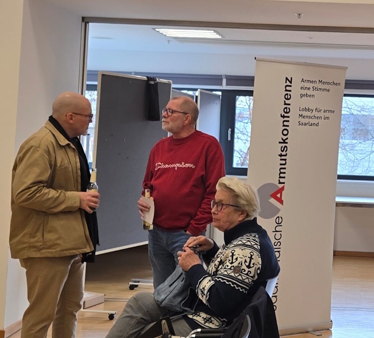 Mit dabei waren seitens der Saarländischen Armutskonferenz Christoph Jacob, Gaby Böhme, Christine Steimer, Dirk Merkel sowie Irene Portugall. Irene Portugall, Beauftragte für von Armut betroffene Menschen, zeigte sich beeindruckt von der Vielfalt der wissenschaftlichen Impulse, Workshops und Praxisbeispiele: Themen wie Katastrophenhilfe, Klimawandel, Künstliche Intelligenz, Internationalisierung, Rechtsextremismus, Etikettierung und Meinungsfreiheit wurden engagiert diskutiert. Christoph Jacob, 2. Vorsitzender der SAK, machte für die Delegation der SAK beim Fachtag deutlich, dass es mehr gemeinsame Strukturen und Vernetzung braucht, um die öffentliche Wahrnehmung zu stärken und wirksame Lobbyarbeit für von Armut betroffene Menschen zu leisten. Dabei sei es wichtig, regelmäßig die eigenen Ansätze zu hinterfragen und durch Weiterbildung sowie überprüfbare Methoden die Arbeit transparent zu halten. Zugleich betonten sie, dass Engagement gegen Armut ein fortlaufender Prozess ist: In organisierter Form kann die SAK Haltung zeigen, die Interessen armutsbetroffener Menschen vertreten und im Austausch mit jungen Menschen deren Bewusstsein für die gesellschaftliche Realität von Armut schärfen.