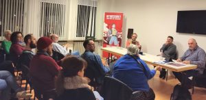 Moderiert von Michael Leinenbach, Vorsitzender der SAK, diskutierten Frank Couck, Vorstandsmitglied der SAK und in der Wohnungslosenhilfe tätig, sowie Harald Kreutzer vom „Haus der Nachhaltigkeit“ des Weltveränderer e.V. über die alarmierende Lage auf dem Wohnungsmarkt und die wachsende Zahl wohnungsloser Menschen.