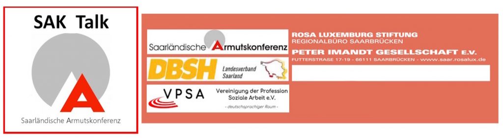 Der SAK Talk ist eine Kooperationsveranstaltung der Saarländischen Armutskonferenz (SAK) e.V., dem Deutschen Berufsverband für Soziale Arbeit (DBSH) e.V. Landesverband Saar, der Vereinigung der Profession Soziale Arbeit (VPSA) e.V., der Rosa Luxemburg Stiftung Saarland.