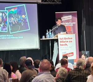 In seiner Rede begrüßte der Landesvorsitzende der Linken Saar, Florian Spaniol, unter anderem die Vertreter der SAK. Er betonte, Armut sei kein individuelles Problem, sondern Ausdruck politischen Versagens. Ein Aktionsplan gegen Armut müsse an den entscheidenden Stellen ansetzen. Spaniol äußerte sich weiter dahingehend, Wohnen sei ein Menschenrecht, und forderte von der aktuellen Landesregierung als Sofortmaßnahme die Einführung eines Mietendeckels. Bis neuer Wohnraum geschaffen sei, stelle ein Mietendeckel eine mögliche Übergangslösung dar.